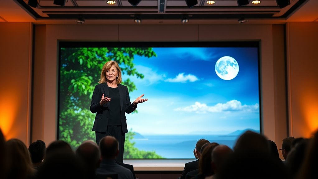 In her leadership talks, Arianna Huffington emphasizes that sufficient sleep is essential for making clear decisions, managing emotions, and staying resilient under pressure. She explains how rest improves cognitive function, boosts creativity, and enhances emotional stability—key traits for effective leadership. Huffington also highlights that organizations benefit from promoting healthy sleep habits, fostering more engaged teams. If you want to discover practical tips and the science behind sleep’s role in leadership success, keep exploring this crucial topic.