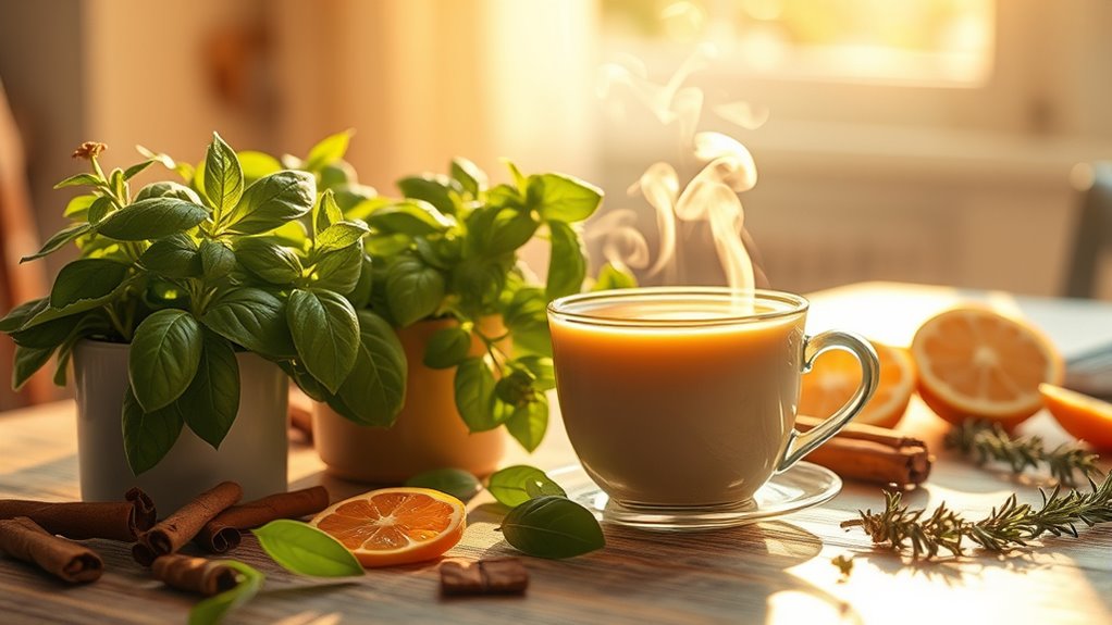 Incorporating seasonal scents into your routine can boost your mood and focus throughout the year. Try pairing scents like citrus in winter or floral in spring to match the season’s energy. Establish daily aromatherapy practices, such as diffusing your favorite seasonal scents in the morning, to make their benefits a consistent part of your day.