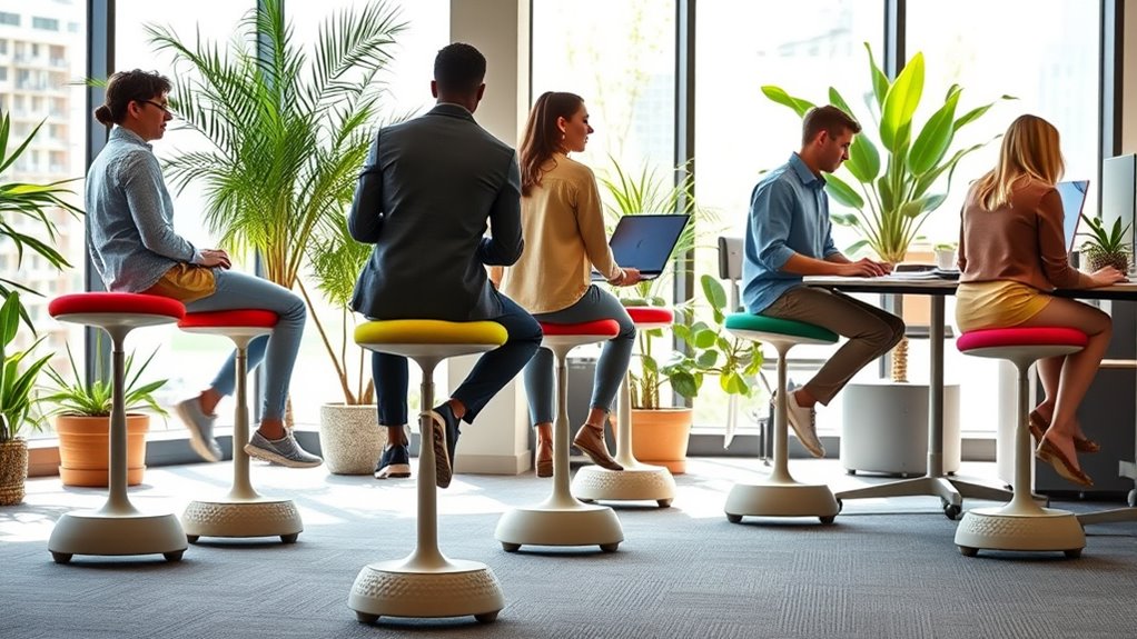 If you’re after the top active sitting wobble stools, there are plenty that promote movement and focus for kids and adults alike. From adjustable stools like the Pearington SitFree to vibrant options like the ECR4Kids Twist or ActiveChairs, these stools help improve posture, strengthen core muscles, and keep you engaged. Many models support different ages and environments, with features like lightweight design, safety, and easy height adjustments. Explore further to find out which one fits your needs best.