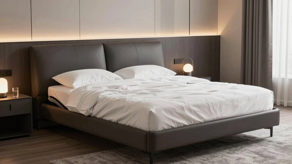 The motors and mechanisms in adjustable beds are generally quite durable, often built to last several years with proper care. I’ve found that quality models use high-grade components designed to handle frequent adjustments without issues. Regular maintenance like keeping the moving parts clean and avoiding excessive weight or rough handling can extend their lifespan. Overall, investing in a reputable brand guarantees you get reliable, long-lasting performance from your adjustable bed’s motors and mechanisms.