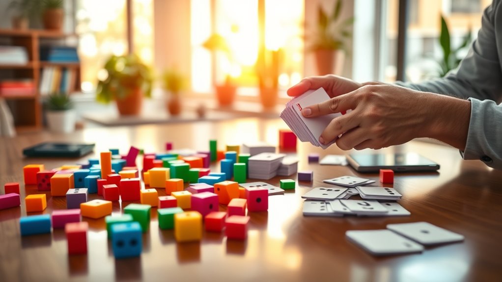 Focusing on specific cognitive skills can make your memory training more effective. Different games target areas like short-term recall, working memory, or long-term retention, so choosing ones aligned with your goals boosts results. Some games enhance attention, pattern recognition, and problem-solving, which are essential for overall memory performance. If you want to strengthen language skills, look for games that improve vocabulary, naming, and associative memory, crucial for daily communication. For spatial reasoning and visual memory, select games that develop mental maps and visual-motor coordination, aiding navigation and spatial awareness. Additionally, opt for games with adjustable difficulty levels. These allow you to tailor challenges as your skills improve or decline, ensuring continuous mental engagement and progress.