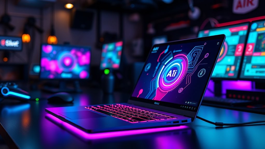 NPUs boost AI performance on laptops by accelerating machine learning tasks directly on the device. I’ve seen how they handle complex computations faster and more efficiently, reducing lag and power consumption. This means smoother AI-driven features like voice recognition, image processing, and real-time translations. With an NPU, I get quicker, more responsive AI capabilities, making my laptop smarter and more capable without relying heavily on cloud processing.