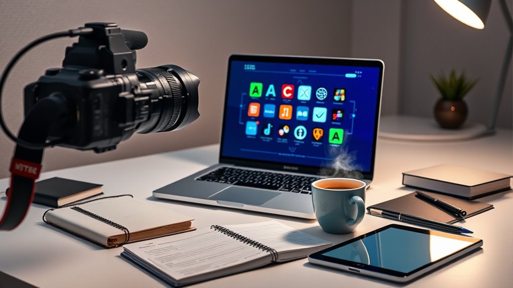 Content creators seeking to streamline their workflow will find AI tools that automate tasks, enhance editing, and support growth indispensable. These tools can cut editing time from hours to minutes, making content production more efficient. For example, ChatGPT assists with brainstorming, Canvas Magic Design creates stunning graphics, and CapCut speeds up video editing. By training AI to mimic your voice, you maintain authenticity while automating routine tasks. Case studies show how AI boosts productivity—more recipes, organized research, personalized client plans—without sacrificing quality. Using AI as a collaborative partner helps preserve your unique voice, reduce stress, and expand your creative potential.