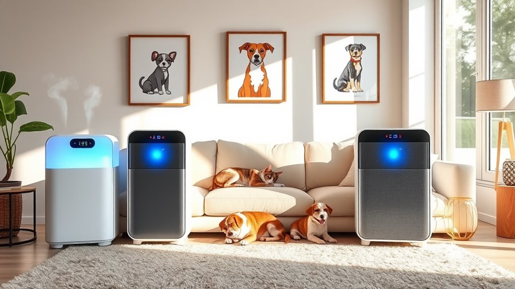 Think of an air purifier as a diligent filter that traps pet odors and dander like a net catching falling leaves. Yes, they’re quite effective. They actively break down smells and capture tiny pet allergens, making the air cleaner and fresher. I’ve seen pets and owners breathe easier after running a good purifier. It’s like turning a smoky, pet-laden room into a fresh breeze—definitely worth it!
