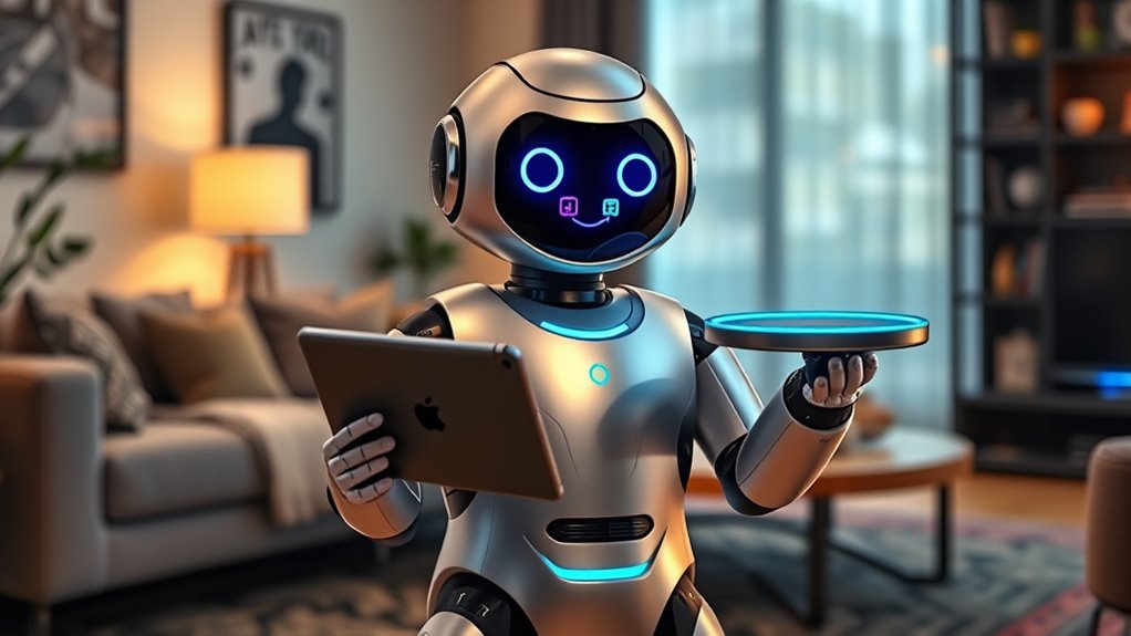 I know privacy is a huge concern, and Amazon Astro takes it seriously—so seriously, it’s like Fort Knox for your data! It uses advanced encryption, multi-layered security protocols, and strict access controls to keep your personal info locked tight. Plus, you can customize privacy settings, disable cameras, or turn off data sharing anytime. Rest assured, Astro’s security features are designed to protect your privacy like a personal bodyguard.