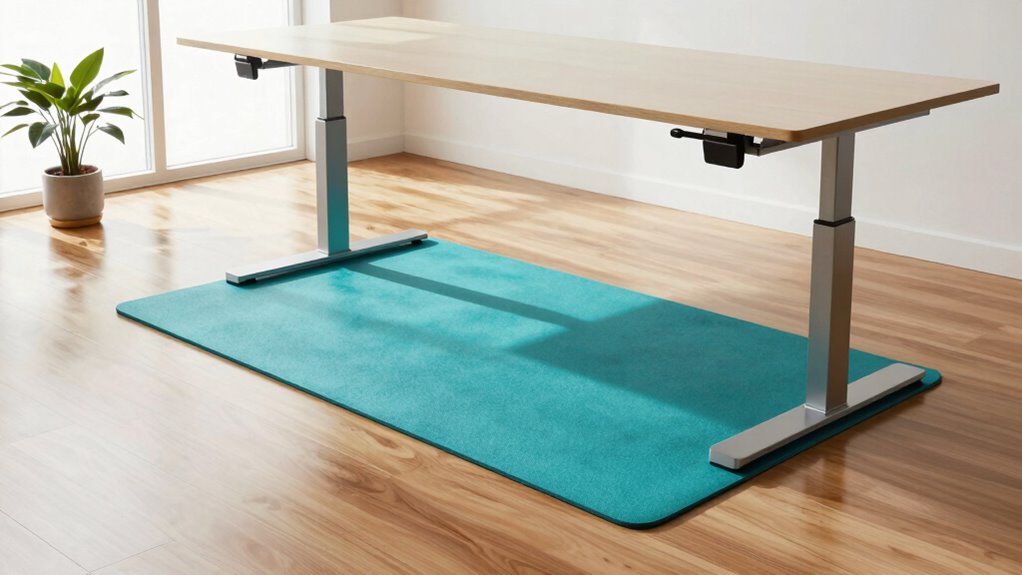 When selecting an anti-fatigue mat for your standing desk, considering its design and aesthetic options is essential to creating a workspace that feels both functional and inviting. Mats come in various colors and patterns, allowing you to match your decor or express personal style. Some feature ergonomic elements, like textured surfaces or topographical designs, which boost visual appeal while encouraging movement. The visual style of the mat can profoundly influence your workspace’s ambiance, making it more comfortable and inspiring. Sleek, solid-colored mats offer a modern, minimalist look perfect for professional settings. Conversely, artistic or patterned mats add personality and visual interest, serving as decorative accents. Choosing a design that complements your space can make a practical accessory feel like an integrated part of your workspace aesthetic.