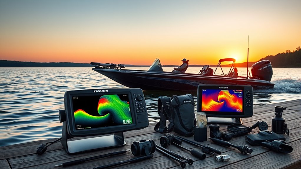 If you’re looking for the best bait boat and fish finder bundles of 2025 to boost your fishing success, I’ve got you covered. I’ve compiled top models featuring advanced sonar, crisp displays, portable options, and reliable GPS features that suit all environments, from freshwater to saltwater and ice fishing. These bundles combine affordability and high performance, making fishing easier and more effective. If you want details on each, just keep exploring to find your perfect match.