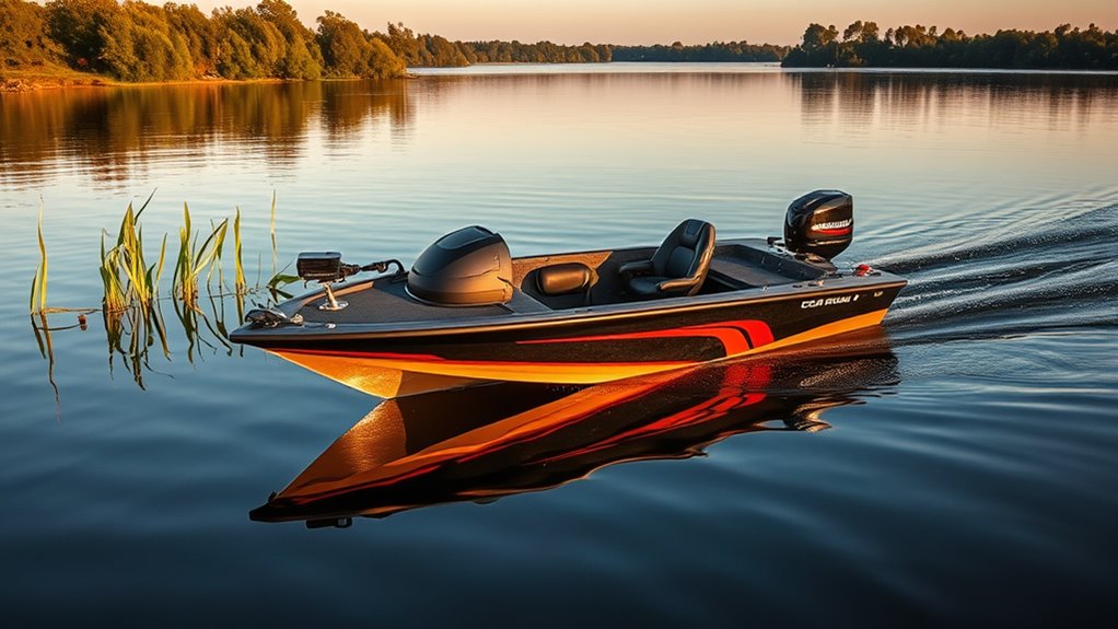Choosing a bait boat that can handle tough conditions is essential for successful carp fishing, especially when unpredictable weather or rough waters come into play. I look for a waterproof hull with sealed joints made from high-quality materials like reinforced ABS or fiberglass, ensuring it can withstand rain, splashes, and even submersion. Corrosion-resistant components, such as stainless steel or coated metals, are vital for durability in water and salt environments. I also verify the electrical system has waterproof connectors and protected wiring to prevent moisture damage. For rough water, I opt for durable propellers and motors designed for continuous use, resisting debris and entanglement. Lastly, reinforced structural frames and impact-resistant features help the boat maintain integrity after collisions or rough handling.