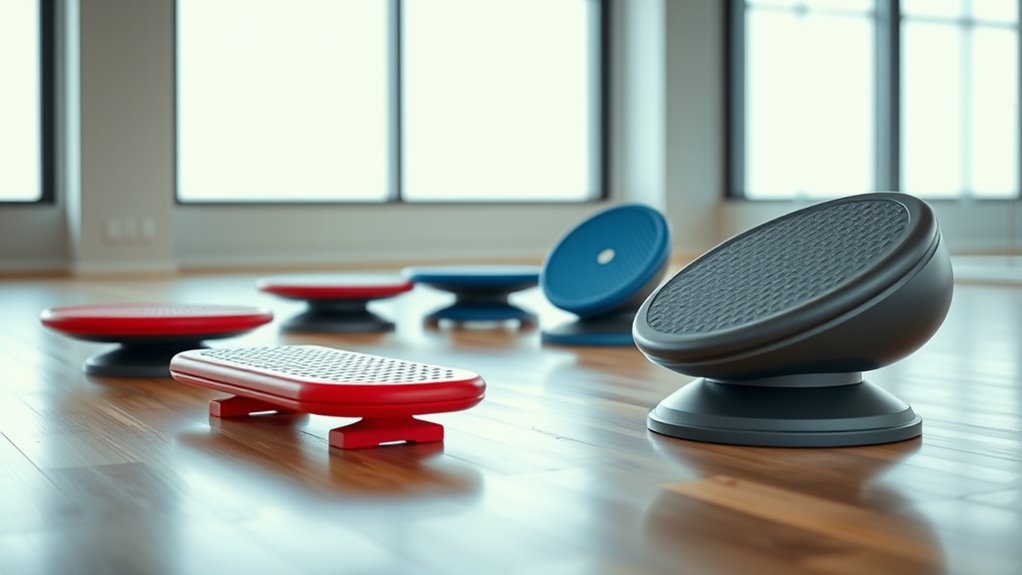 If you’re looking to boost your stability and core strength in 2025, I recommend exploring the top 15 balance boards and wobble trainers available now. These options combine durable materials, safety features, and versatility for all fitness levels, from beginners to experts. Whether you prefer wooden, anti-slip, or dynamic models, there’s something for everyone. Keep going to discover the best picks that will help you stay balanced and steady in the year ahead.