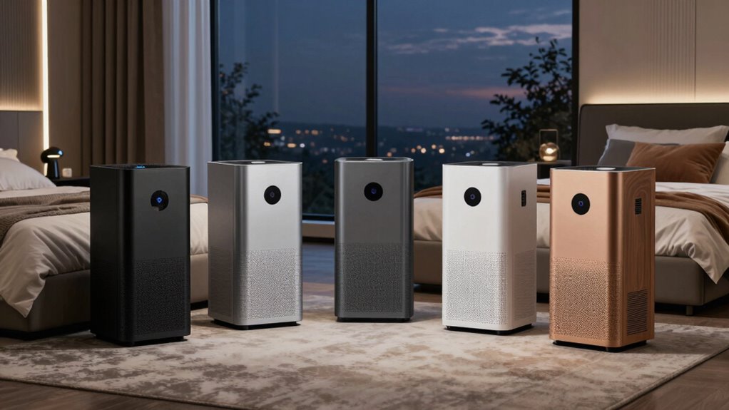 I’ve found the top premium bedroom air purifiers for 2026, which combine advanced filtration, smart features, and quiet operation for a healthier sleep environment. Models like Winix 5520, Afloia, Pure Enrichment PureZone, AirDoctor AD3500, Levoit Core300-P, and Jafända JF500 cover large spaces, offer app and voice control, and remove allergens and odors effectively. If you want to discover which one suits your needs best, explore further to learn more.