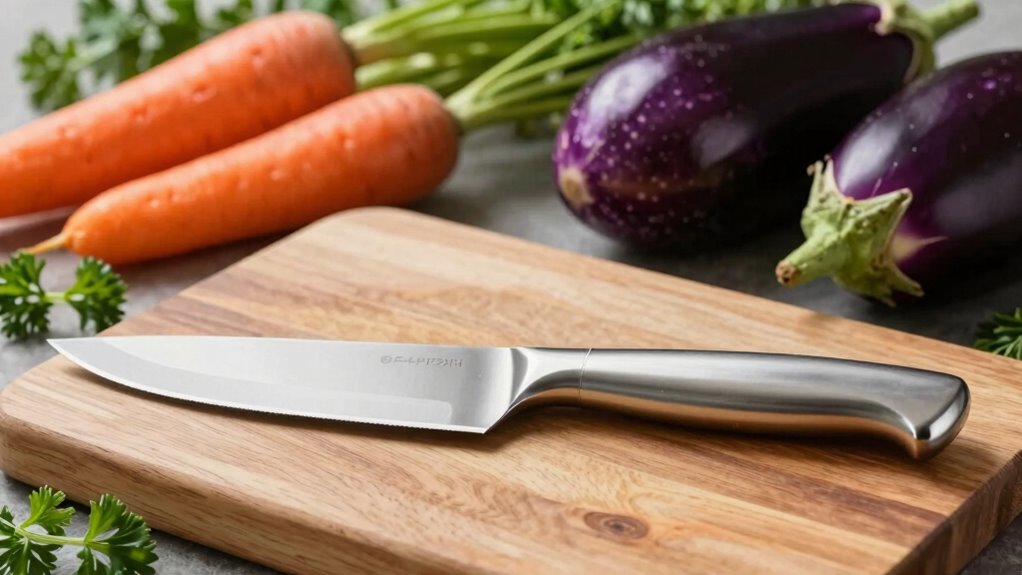 Did you know that a sharp knife reduces the risk of accidents? To keep my boning knife in top shape, I hand wash it immediately after use and dry it thoroughly. I sharpen it regularly using a whetstone or honing steel, focusing on a consistent angle. Avoid dishwasher cleaning, and store it safely. Proper maintenance guarantees precision and longevity, making every cut safer and more efficient.