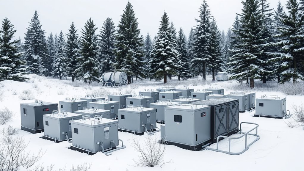 Yes, lithium batteries can operate effectively in freezing conditions if they’re specially designed for cold weather. I’ve found that those with integrated thermal management and low-temperature electrolytes perform reliably, even below freezing. They maintain capacity and safety, ensuring your off-grid power stays steady. Just make sure you choose batteries rated for cold environments, and consider adding insulation or heating solutions for extreme conditions.