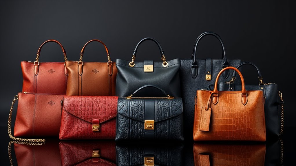 When selecting a designer handbag, thinking about how versatile it is for different occasions can make a big difference in your choice. I look for styles and sizes that work for casual outings, work, and formal events, guaranteeing I won’t need multiple bags. Features like adjustable straps, detachable handles, or classic designs help the bag transition smoothly from day to night. I also consider color options and material quality to match various outfits and guarantee durability. Practicality matters too, so I choose bags with adaptable carrying options—like crossbody, shoulder, or clutch modes—that suit different settings. Additionally, multiple compartments and secure closures enhance functionality, making the handbag a reliable accessory across diverse events. Versatility ensures I get the most value and style from my investment.