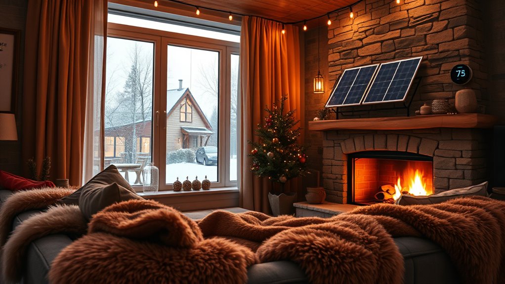 Building on my waste reduction efforts, incorporating renewable energy sources into my home helps further lower my environmental impact during winter. Installing solar panels can cover up to 100% of my electricity needs, making my energy use more sustainable and reliable. If I live in a windy area, adding a wind turbine can generate significant power, reducing my dependence on the grid. Shifting to renewable energy often comes with tax incentives and rebates, making it more affordable and attractive. Incorporating these sources into my heating system not only cuts greenhouse gas emissions but also boosts energy efficiency. By choosing renewable options, I can stay cozy this winter while actively reducing my carbon footprint and supporting a healthier planet.