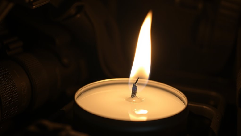 A stitch in time saves nine, so I always follow safety tips with emergency candles. I keep them on stable, heat-resistant surfaces and never leave them unattended. I trim the wick to prevent excess smoke and keep candles away from flammable materials. Ventilate the area if burning for a long time, and make sure they’re out completely before leaving or sleeping. Safety first keeps your emergency lighting reliable and stress-free.