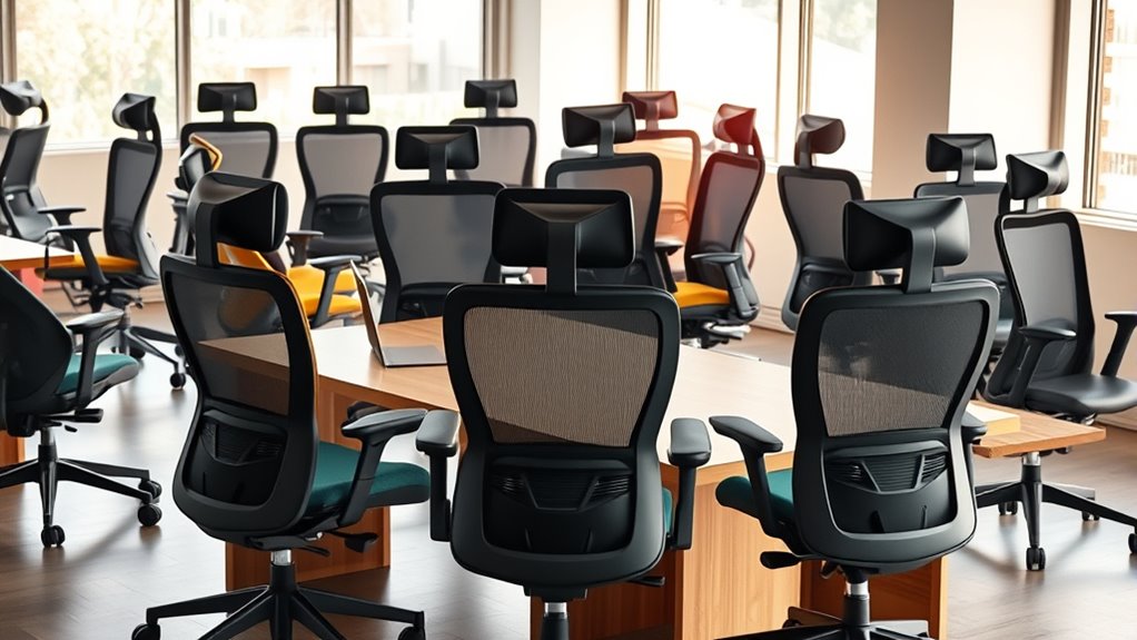 If you’re looking to upgrade your workspace in 2025, I recommend exploring the top ergonomic office chairs that combine comfort, support, and style. From adjustable lumbar support and flip-up armrests to breathable mesh designs, these chairs are built to reduce strain and boost productivity. Whether you need a professional executive chair or a budget-friendly option, there’s something for everyone. Continue exploring to discover how these chairs can transform your daily work experience.