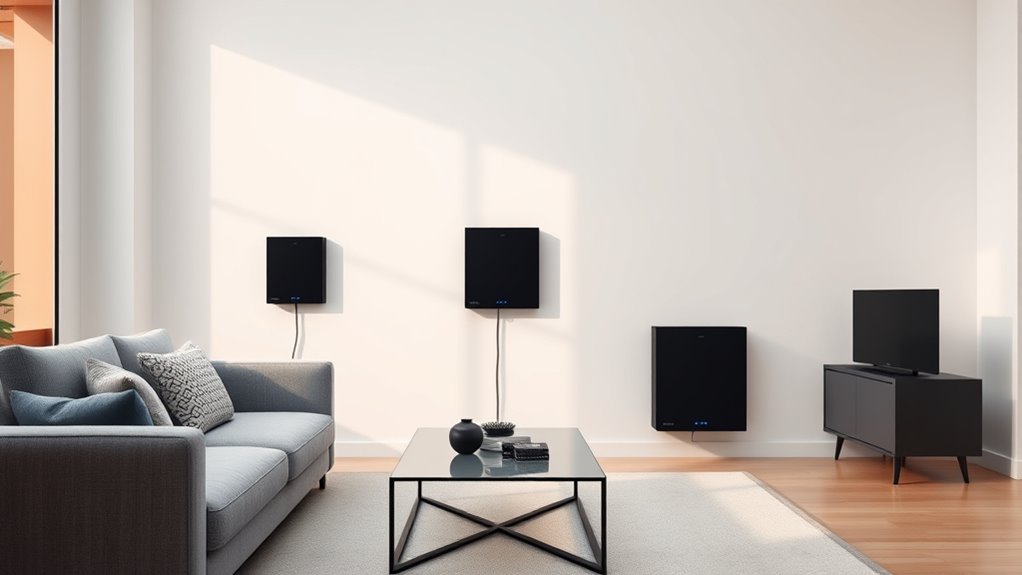 These mesh Wi-Fi systems prioritize security with features like WPA3 encryption, which keeps your network safe from intruders. They often include guest networks to isolate visitors, automatic firmware updates to patch vulnerabilities, and robust firewalls. I always make sure these features are enabled and keep my system updated. Using these security measures gives me peace of mind, knowing my home network stays protected while enjoying seamless, reliable connectivity across all my devices.