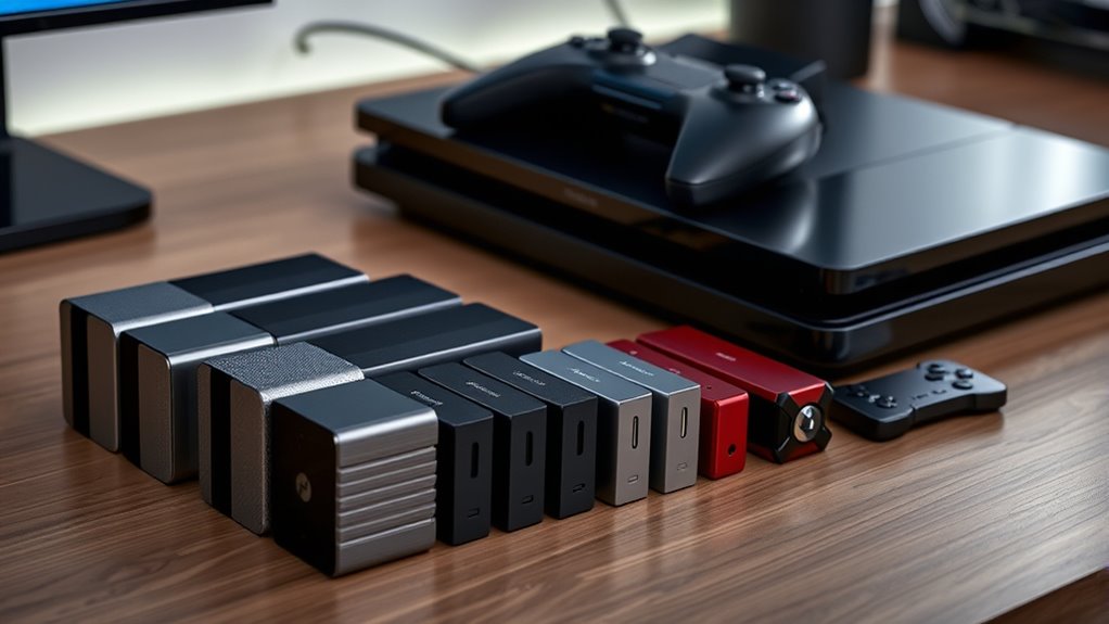 Choosing the right external drive is like planting a sturdy tree in your gaming garden—it guarantees your games grow strong and plentiful. Whether you need massive storage or just a quick boost, the options here will help you maximize your space and keep your gameplay flowing smoothly. So, pick the one that fits your needs best, and watch your gaming universe flourish with endless adventures just a plug away. Happy gaming!