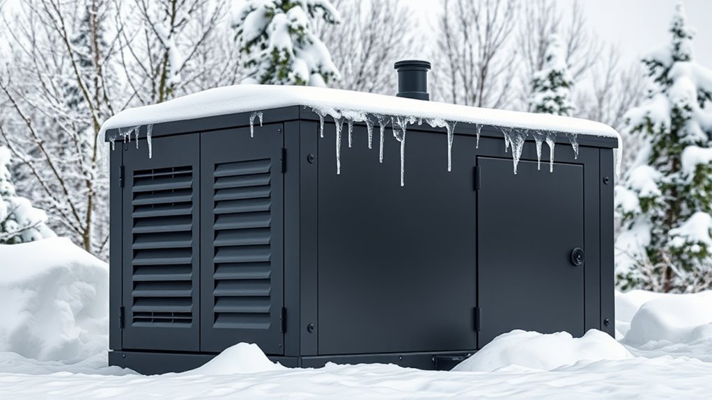 Enclosures prevent snow buildup inside by creating a sealed environment that blocks snow from entering. I make sure they have proper ventilation to avoid moisture buildup while keeping snow out. The design often includes raised bases and tight seals around doors and vents, which help keep snow and moisture outside. This way, my generator stays dry and protected, ensuring reliable operation even in heavy snowfall.