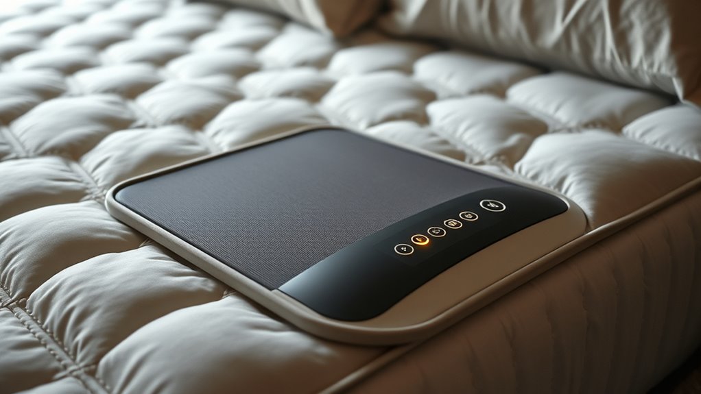 Heated mattress pads can sometimes interfere with sleep trackers, especially those that rely on movement or heart rate monitoring. I’ve noticed some trackers pick up the heat or electrical signals, causing inaccuracies. To avoid this, I turn off the pad or keep it on a low setting while sleeping. Using a sleep tracker that’s less sensitive to external interference can also help guarantee your data remains accurate.