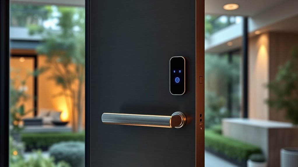 Choosing the right high-end smart lock can feel overwhelming, but remember, investing in security and style is worth it. Don’t let worries about tech complexity hold you back—these locks are designed for easy, seamless use. With features like fingerprint access and remote control, you’ll gain peace of mind without sacrificing aesthetics. Trust me, upgrading your door isn’t just smart; it’s a stylish move toward safer, more convenient living.