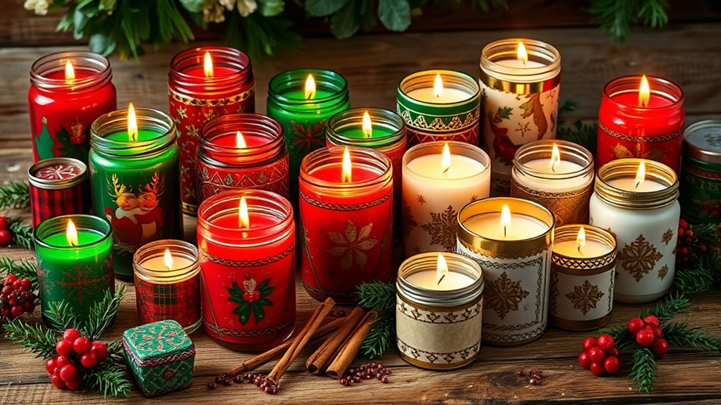 How do you determine if a holiday candle set is truly worth the price? First, compare the price per candle or ounce to see which set offers the best value. Look at burn time and fragrance strength—long-lasting candles with a strong scent give you more for your money. Consider sets with multiple scent options; they provide variety and enhance perceived value. Check if the candles use high-quality ingredients like soy wax and essential oils, which often justify a higher cost. Also, pay attention to packaging and presentation—attractive, gift-ready sets can feel more valuable even if priced higher. Ultimately, balancing quality, longevity, scent strength, and presentation helps you find a set that offers the best bang for your buck.