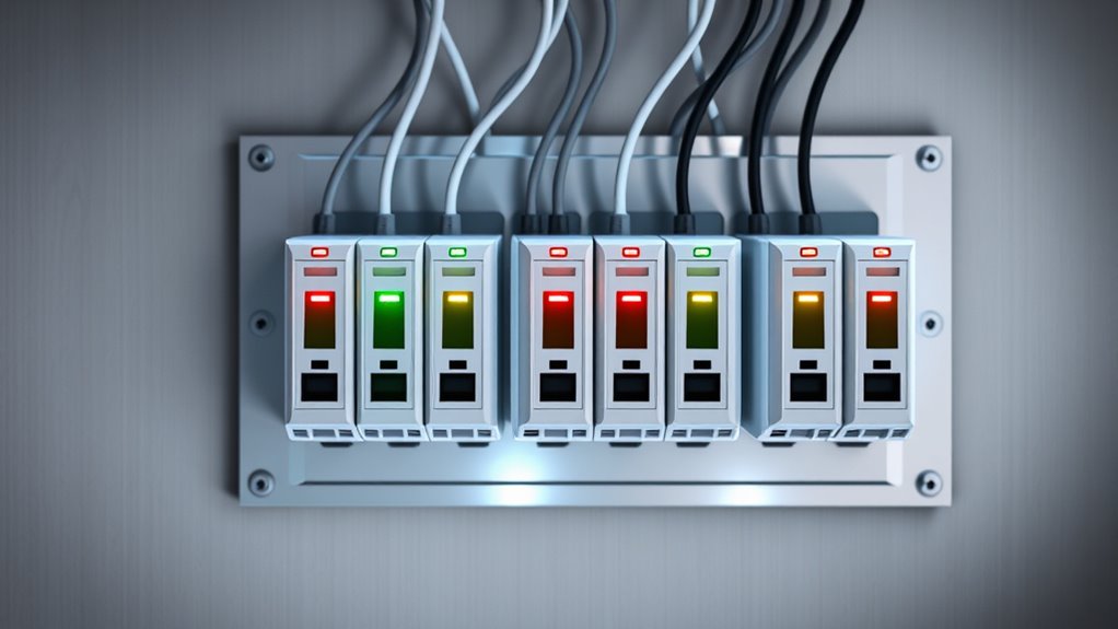 Have you ever wondered how to tell if your home surge protector is still working effectively? Many models feature clear LED indicators that show whether the device is actively providing protection or needs replacing. Some even include audible alarms or warning signals to alert you when protection has been compromised. Regularly inspecting these indicators helps ensure your devices are always safeguarded, and replacing surge protectors as recommended by the manufacturer keeps your system reliable. Keeping a log of indicator statuses and replacement dates can help you track the lifespan of your surge protector. Proper maintenance and monitoring are essential to prevent damage to your electronic devices. Staying vigilant about indicator signals guarantees your surge protection remains functional, giving you peace of mind in safeguarding your home’s electronics.