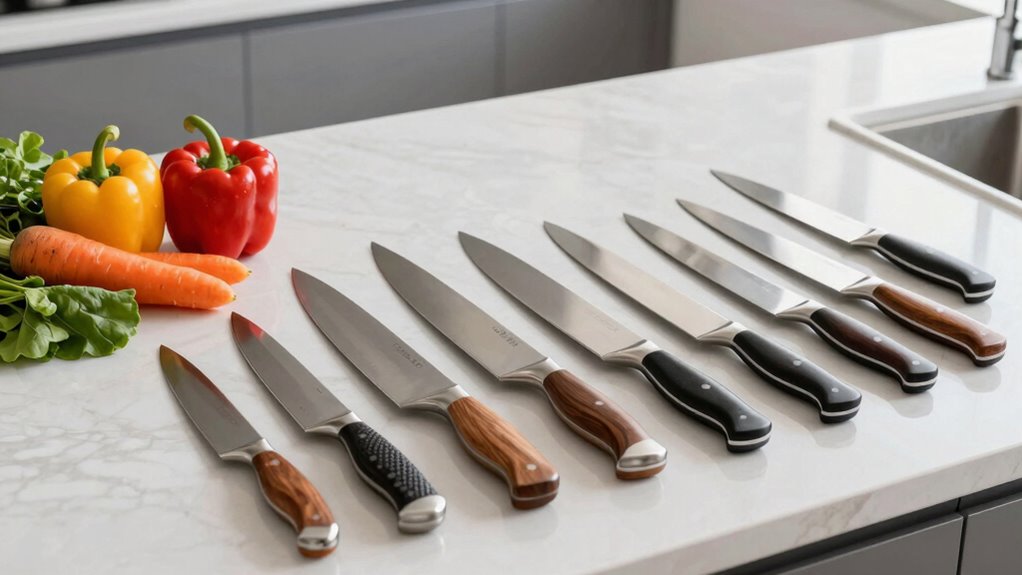 Did you know that using the right knife can reduce prep time by up to 50%? With options like the Matsato Chef Knife or the Nakiri, you’ll make veggie prep faster and safer. Investing in quality knives not only improves your cooking experience but also keeps you safe in the kitchen. So, choose wisely and enjoy effortless vegetable prep—your meals and your hands will thank you!