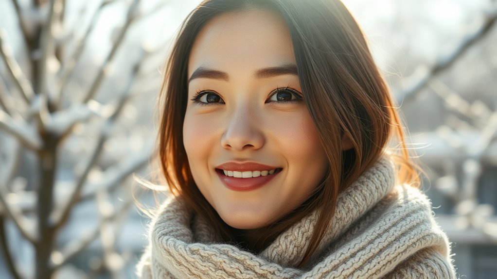 Korean sunscreens are like shields against the winter chill—they perform surprisingly well in cold, dry air. I find them lightweight yet effective, providing hydration without feeling greasy or heavy. They stick to my skin, protecting me from UV rays even on the iciest days. Plus, many contain nourishing ingredients that combat dryness, making them perfect for winter’s harshness. You’ll love how seamlessly they blend into your skincare routine!