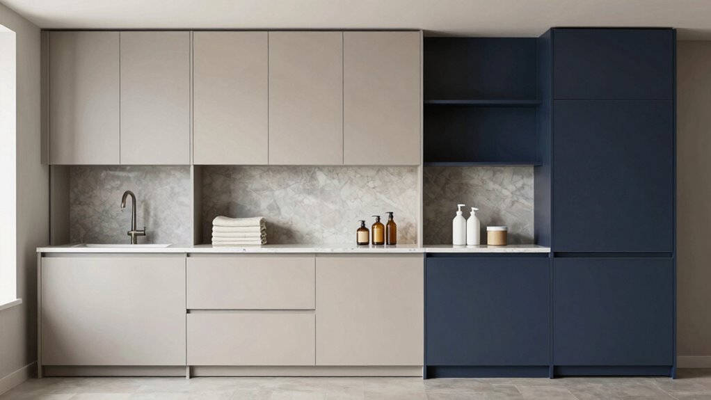 Choosing the right laundry center cabinet can truly streamline your space and boost efficiency. Did you know that over 60% of homeowners say organized laundry areas make daily chores less stressful? From tall cabinets with multiple doors to stylish farmhouse pantries, there’s something for everyone. Remember to take into account storage needs, style, and budget. With the right choice, you’ll transform your laundry room into a tidy, functional haven you’ll actually enjoy using.