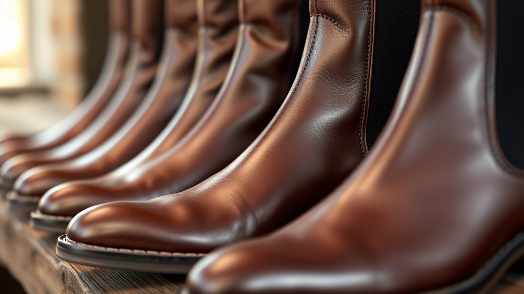 Selecting leather Chelsea boots that suit both casual and formal settings is essential for maximizing their versatility. I look for designs with a classic silhouette that can easily switch between outfits and occasions. Neutral colors like black or brown are my go-to because they pair effortlessly with most wardrobe choices, from suits to jeans. I also check if the boots have a timeless style that won’t look out of place, whether I’m at the office or out on the weekend. Adjustable features, like elastic side panels, are a plus, ensuring a comfortable fit across different styles and dress codes. Ultimately, versatile Chelsea boots should seamlessly complement various outfits, making them a practical and stylish addition to any wardrobe.