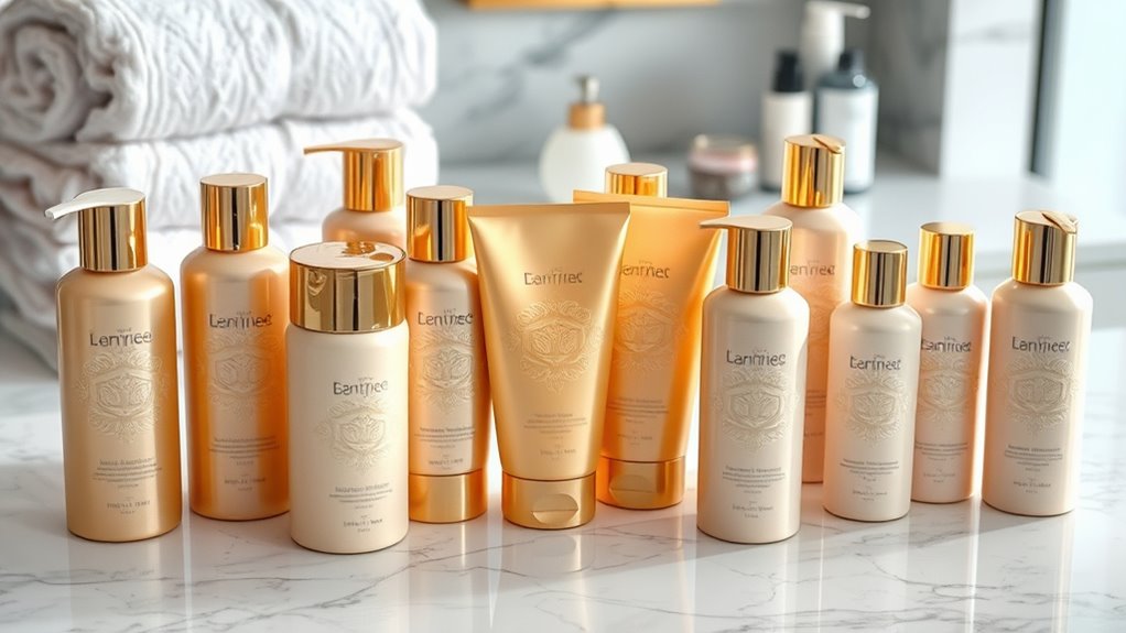 How do you guarantee your luxury body lotion set truly benefits your skin? First, match the product to your skin type. If you have oily skin, look for oil-free formulas to avoid clogging pores. For dry or sensitive skin, choose richer creams with hydrating ingredients like hyaluronic acid or glycerin to lock in moisture. If your skin is sensitive or allergy-prone, check for labels like non-comedogenic and hypoallergenic to reduce irritation. For delicate skin, opt for sets free of artificial fragrances, parabens, and alcohol, which can trigger reactions. Including soothing ingredients like aloe vera or chamomile can also help calm and nurture sensitive skin. Picking the right formula ensures your lotion works harmoniously with your skin’s needs, delivering maximum pampering and benefits.