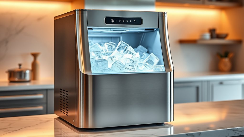 Imagine sculpting your perfect ice masterpiece—yes, many luxury ice machines let you customize ice textures! You can select from fine, crushed, or chunkier styles, giving you control like an artist with a palette. These settings let you craft not just ice, but an experience. Whether for cocktails or dessert, I love how flexibility transforms ordinary into extraordinary, making each sip or bite uniquely yours.