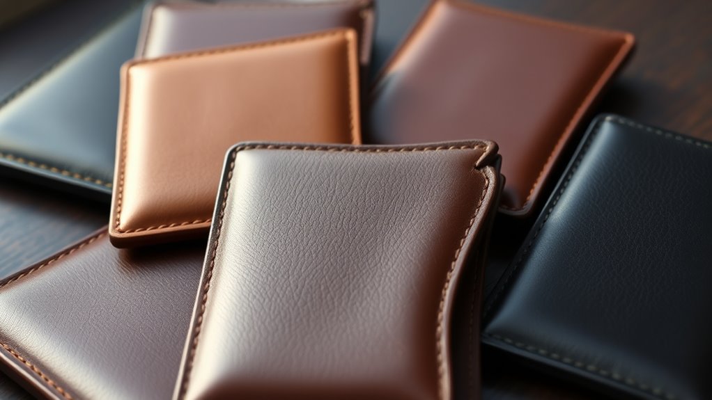 Leather quality greatly impacts both how long your wallet lasts and how it looks over time. I’ve found that high-quality leather, like full-grain or top-grade, ages beautifully, developing a unique patina that adds character. It’s more durable, resisting wear and tear better than cheaper options. Investing in good leather means your wallet stays stylish and functional for years, making it a smart choice for anyone who values craftsmanship and longevity.