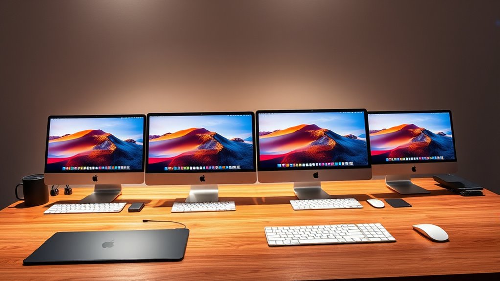 Choosing a Mac Studio for 3D rendering hinges heavily on processing power, as it directly influences how quickly and efficiently your projects come to life. A multi-core CPU and GPU are essential for reducing rendering times, especially with complex scenes. The number of cores impacts your ability to handle detailed models and compute-intensive tasks, so more cores mean better performance. Faster clock speeds in the CPU also boost rendering speed, particularly when working with real-time rendering or iterative workflows. Dedicated hardware acceleration, like ray tracing, enhances both quality and speed for photorealistic visuals. Ultimately, sufficient RAM ensures smooth handling of large scenes and textures, preventing bottlenecks. Balancing these factors ensures your Mac Studio can meet the demanding processing needs of advanced 3D rendering.