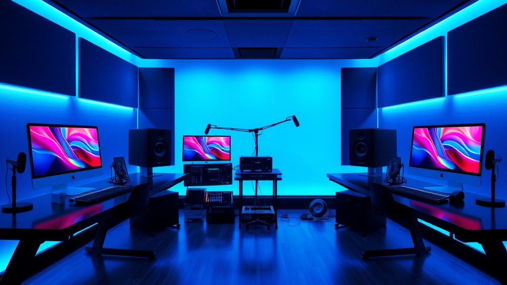 If you’re after the top Mac studios for audio production in 2025, search no further. The latest Mac Studio models with M4 and M4 Pro chips offer powerful performance, stunning sound quality, and compact size that fits seamlessly into tight studio spaces. Their advanced processors, extensive connectivity, and high-end audio capabilities make them perfect for demanding projects. Keep exploring, and you’ll discover which options truly stand out for your studio needs.