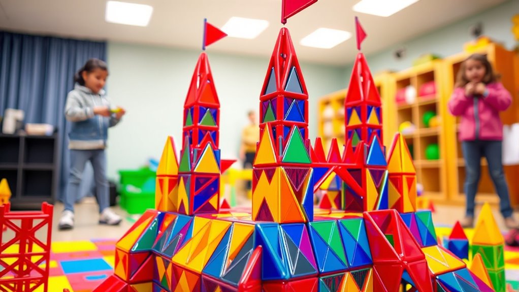 Magnetic tiles definitely support STEM learning by encouraging kids to explore engineering, geometry, and problem-solving through hands-on play. I’ve seen children experiment with building structures, understanding shapes, and learning about magnetic forces naturally. They foster creativity and critical thinking in a fun, engaging way. If you want your child to develop essential skills while playing, magnetic tiles are a fantastic educational tool that promotes curiosity and discovery.
