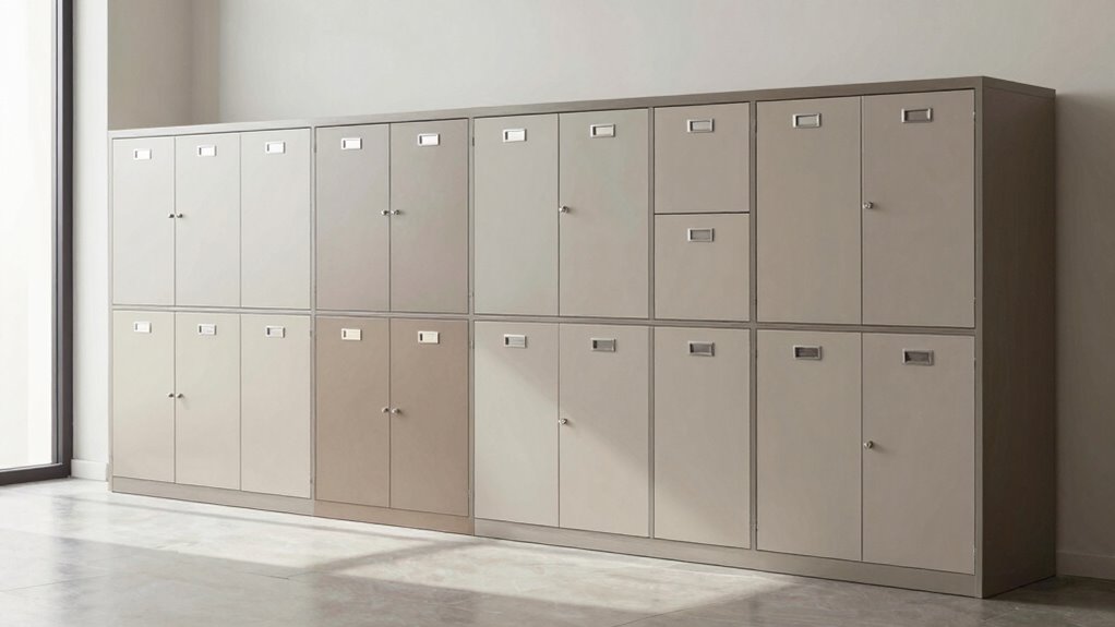 Choosing a mail sorting cabinet that withstands daily use hinges on the materials it’s made from. Solid wood, metal, or high-quality engineered wood are common options because they resist wear and breakage over time. The thickness and density of these materials matter—heavier-gauge metal or dense wood provide better durability. Water-resistant finishes and scratch-proof surfaces further protect against spills and surface damage, extending the cabinet’s lifespan. Reinforced joints and sturdy construction techniques also contribute to stability and long-term reliability. It’s important to select materials that are eco-friendly and non-toxic, ideally with EPA certifications, ensuring safety for indoor use. Overall, choosing durable materials means your mail sorter will stay functional and looking good for years to come.