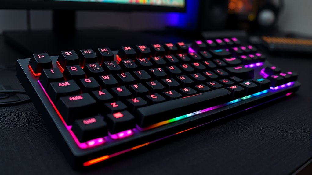 Mechanical keyboards markedly improve gaming performance and response times because they provide faster, more precise key presses. I notice that they register my commands instantly, reducing lag and making my gameplay smoother. The tactile feedback helps me react quicker, especially in fast-paced games. Overall, I feel more confident with a mechanical keyboard, as it enhances my accuracy and speed, giving me a competitive edge.