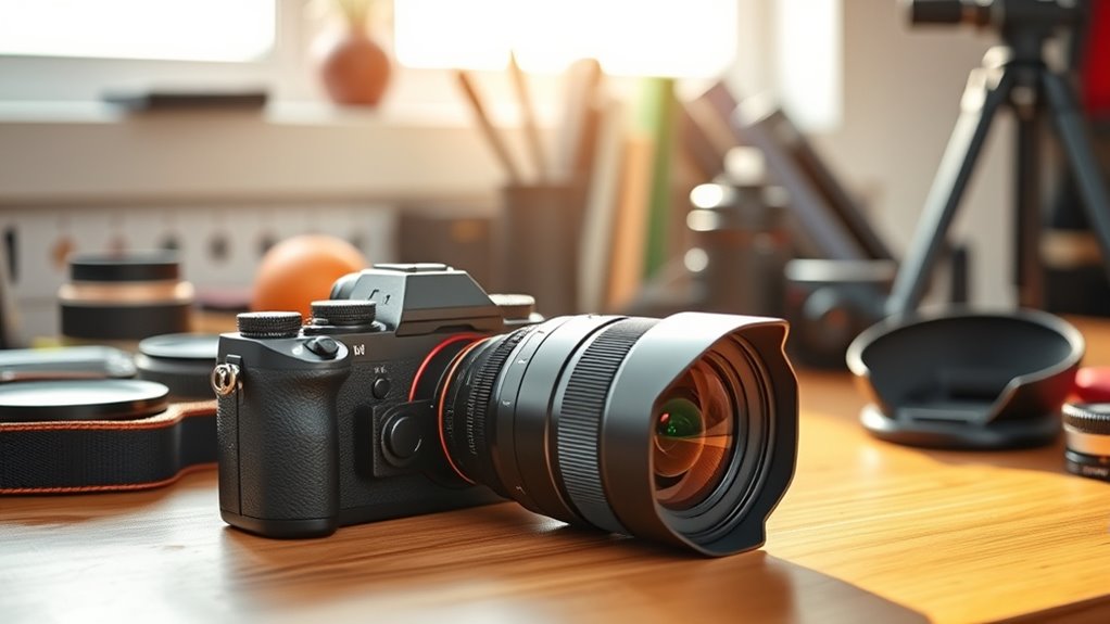 Choosing a mirrorless camera that meets high image quality standards is vital for creators aiming for professional results. I look for high-resolution sensors, typically 24-32 MP, to capture sharp, detailed images suitable for prints and cropping. A wide dynamic range is also essential, as it ensures I retain detail in both shadows and highlights, producing more natural photos. Low noise performance at higher ISO settings helps me shoot in low-light conditions without sacrificing clarity. Advanced image processors like Canon’s DIGIC X or Sony’s BIONZ XR greatly enhance image quality by reducing noise and enhancing color accuracy. Additionally, oversampling techniques—such as 6K to 4K—deliver sharper videos with less aliasing, elevating the overall visual fidelity of my content.