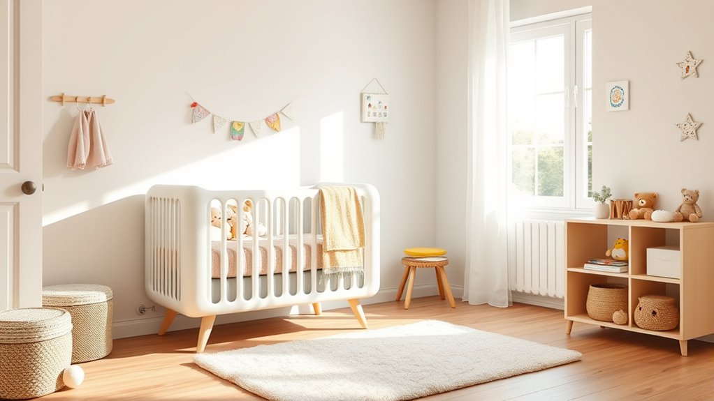 Yes, oil-filled radiators are energy-efficient for nursery heating. I find they use less electricity because they retain heat well and continue to warm the room even after being turned off. Plus, they distribute heat evenly and don’t blow air around, making them safer and more comfortable for little ones. They’re a smart choice if you’re looking to save energy while keeping your nursery cozy and safe.