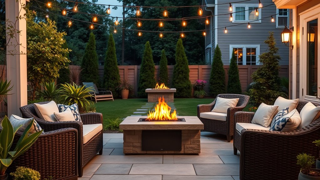 If you’re looking to add style and warmth to your backyard, I recommend exploring some top outdoor electric fireplaces. From sleek wall-mounted designs to freestanding stoves with realistic flames, these units offer both ambiance and heat for cool evenings. Many come with remote controls, adjustable flames, and weather-resistant features. Keep in mind size, installation, and safety. If you keep exploring, you’ll find detailed options that fit your space and style perfectly.