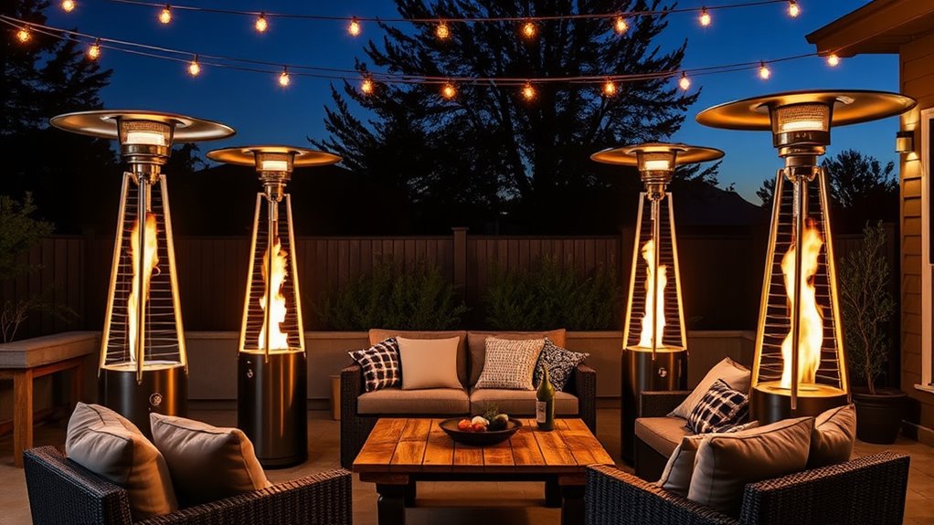 Imagine a warm sunbeam on a chilly day—that’s what eco-friendly or solar-powered patio heaters offer. Yes, there are options that harness the power of the sun or use environmentally friendly fuels. I’ve found models that are both efficient and gentle on the planet, perfect for those who want to enjoy outdoor comfort without guilt. These heaters symbolize a future where coziness and sustainability go hand in hand.