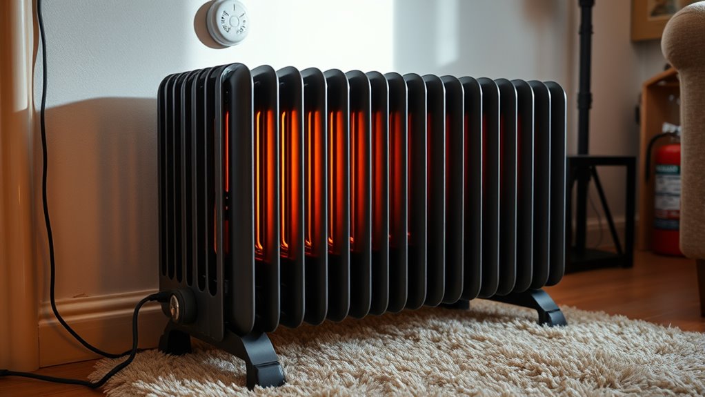 When using portable oil radiators, I always ensure they are placed on stable surfaces, away from flammable materials, and with enough space around them for ventilation. I also double-check that cords are intact, unplug the heater when not in use, and take advantage of safety features like tip-over and overheat protection. It’s vital to keep children and pets safe and follow all manufacturer instructions. Keep going to discover more essential safety tips to keep everyone protected.