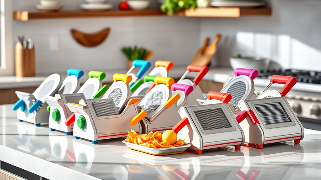 Choosing the right mandoline slicer is like finding the perfect paintbrush—you’ll wonder how you ever cooked without it. With so many exceptional options in 2025, you’ll be slicing with finesse and saving time in the kitchen. Just pick the one that feels right for you, and watch your meal prep become as effortless as a gentle breeze. Happy slicing—your culinary adventures await!