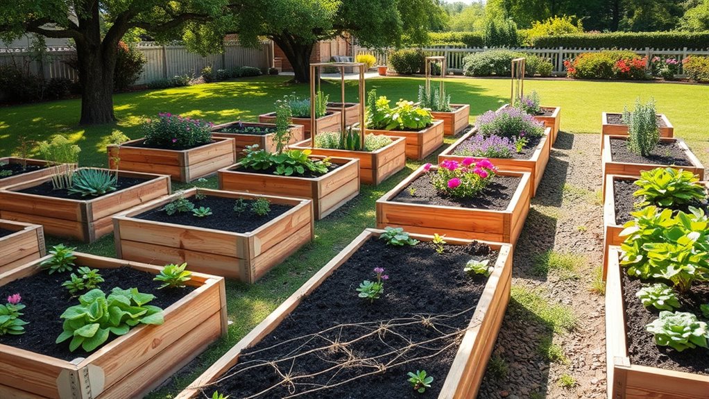 Looking to transform your garden in 2025, I recommend exploring the top 15 raised garden beds that combine durability, style, and ease of assembly. From galvanized steel options with weather resistance to wooden beds that add a natural touch, these designs cater to various garden sizes and needs. Many feature open-base drainage, elevated heights, and modular options to optimize space and comfort. If you want to discover the best picks that will elevate your outdoor space, keep going.