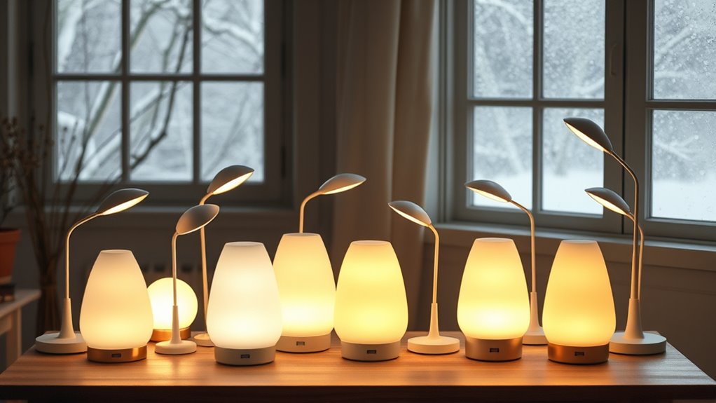 If you’re looking for the best sad lamps to lift your mood during winter, I’ve got you covered. I’ve found 15 top options that combine stylish designs, adjustable brightness, and multiple color temperatures to suit your needs. These lamps are safe, flicker-free, and highly effective for light therapy, whether at home, in the office, or on the go. Keep going, and you’ll discover more about how to choose the perfect lamp for you.