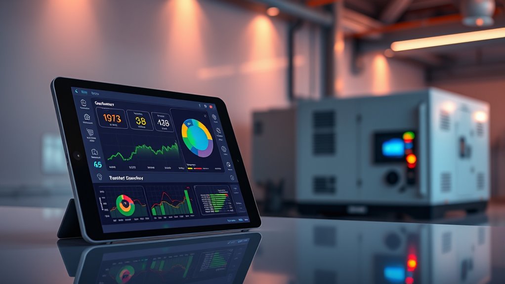 In the world of power management, these smart monitoring apps are your lighthouse guiding you through the stormy seas of energy needs. They turn complex systems into a symphony of control, making sure your generator’s performance stays in tune. So, whether you’re a seasoned pro or just starting out, embracing these tools will guarantee your energy flow remains smooth and reliable—bringing peace of mind like a steady heartbeat in the chaos.