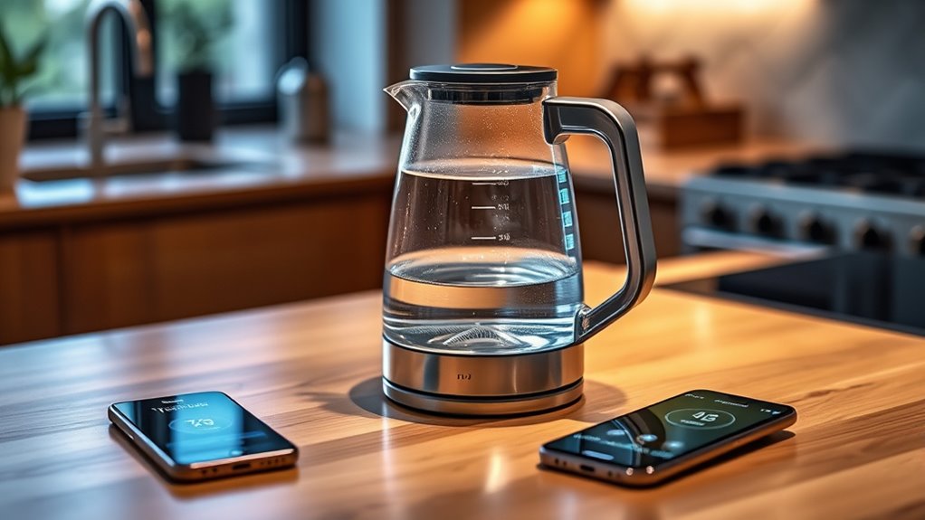 Choosing a smart kettle with temperature control becomes much easier when it has a user-friendly design and intuitive controls. Clear displays and simple interfaces make adjusting and monitoring temperatures straightforward, reducing frustration. Ergonomic features like comfortable handles, wide openings for filling and cleaning, and accessible buttons add to effortless operation. Lightweight and cordless models boost convenience, allowing for easy pouring without dealing with cords. Visibility of water levels through side windows or digital screens helps me fill accurately and avoid spills. Additionally, simplified interfaces with preset modes and customizable options make brewing different beverages quick and easy, even for beginners. Overall, a well-designed kettle enhances the user experience by combining practicality with ease of use, making my daily tea or coffee routine much more enjoyable.