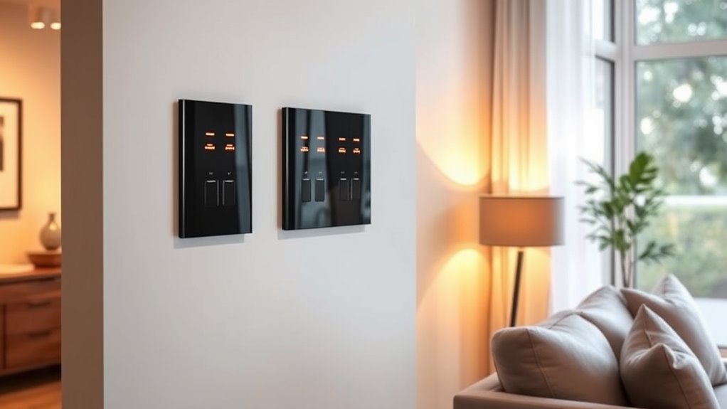 Like a symphony needing harmony, smart light switches must align with your home ecosystem. Not all are created equal; some work seamlessly with Alexa, Google, or Apple, while others are more limited. I recommend checking compatibility before purchasing. This way, you guarantee smooth integration. It’s like finding the perfect dance partner—when everything syncs, your smart home performs beautifully, effortlessly enhancing your daily life.